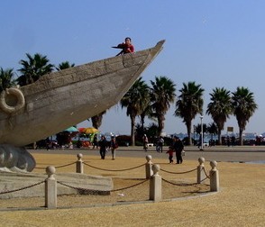 笔者在霞山渔港公园看到,一群贪玩的小孩子来到公园广场,攀爬上渔港公园主题博鱼网页版“海之恋”,并在“船头”高处蹦蹦跳跳,在博鱼网页版船上任意跑动。广场上是硬底地面,博鱼网页版石船的船头离地面约有三米高,博鱼网页版石船上周边没有护栏,小孩在上面跑动,很容易跌落。